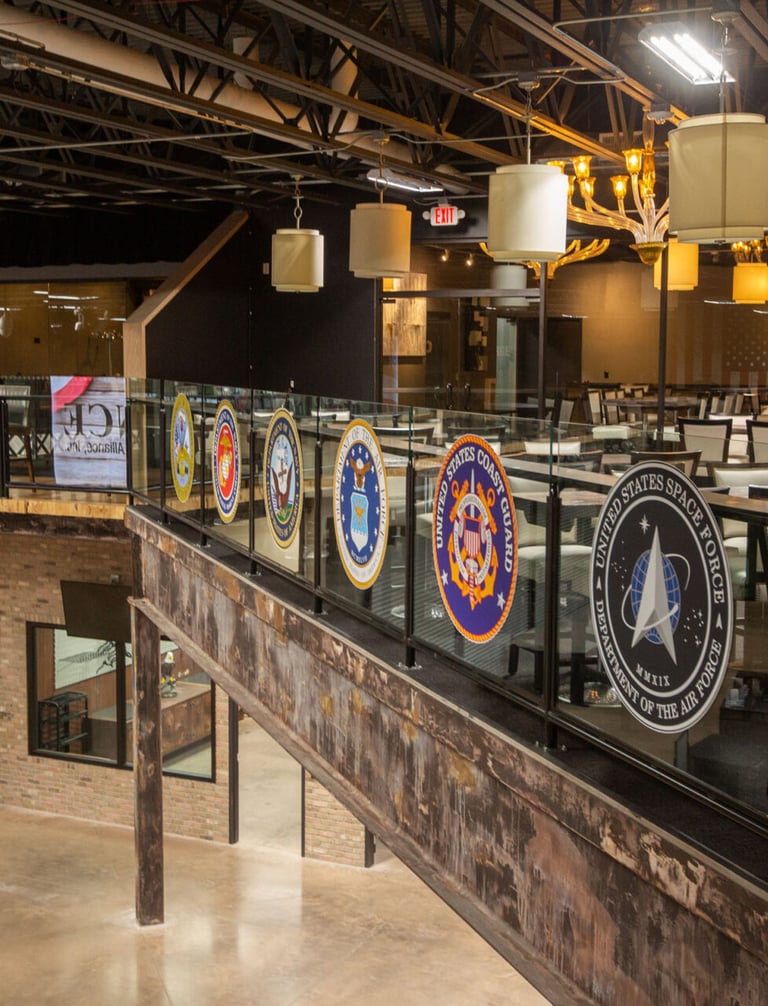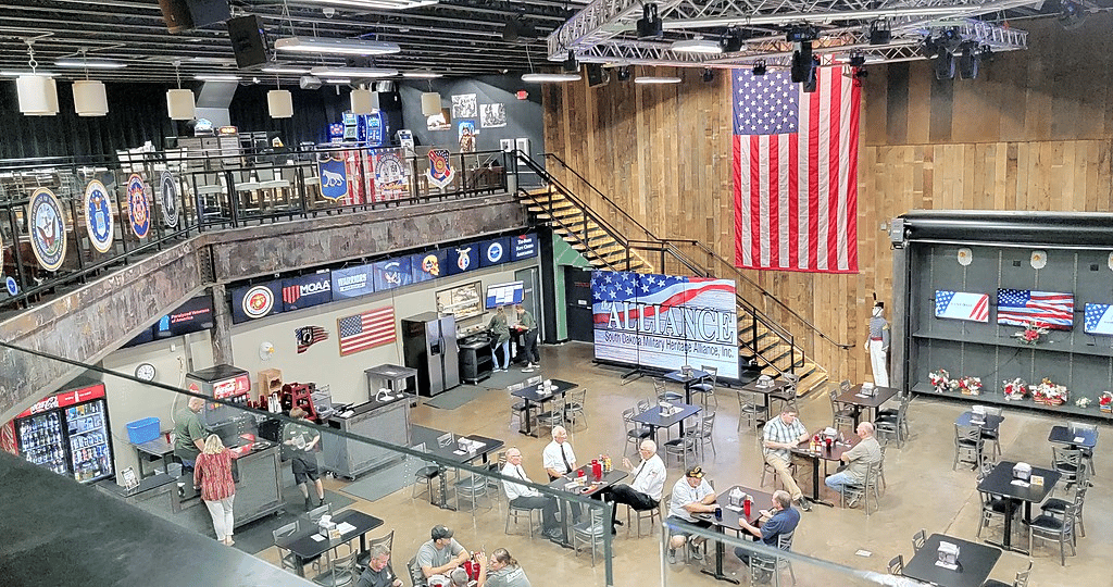 South Dakota Military Heritage Alliance from the second floor looking towards the retail area and kitchen entrance. This is where we hold our pancake breakfasts. The first (AL) and third (VFW) Sundays of each month.