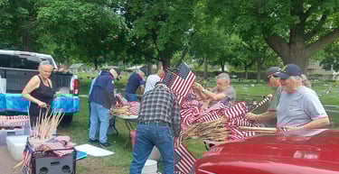 Veterans and their family members collecting flags after placing them for the Memorial Day Weekend. Hills of Rest, Woodlawn, Mount Pleasant, St Michael, and the State Veterans Cemeteries.
