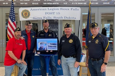 Members of Post 15 and our District commander working a booth at the Denny Sanford Arena. We do several Ag and Gun shows a year. Reaching out to veterans and their families.