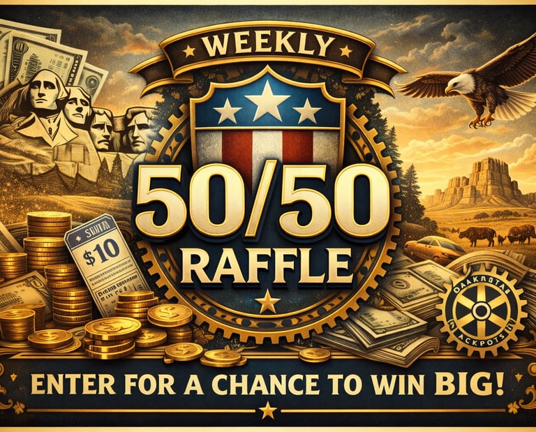 Dakota Jackpots’ Weekly 50/50 Raffle combines excitement with trust and local impact. Every week, half the jackpot goes to the winner, and half supports veterans and South Dakota community causes.
